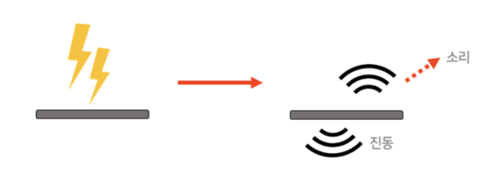 부저에서 소리가 나는 원리는 피에조 효과(압전효과)와 같다. 압전 효과는 물체에 기계적인 압력을 가하면 전압이 발생하고, 역으로 전압을 가하면 기계적인 변형이 발생하는 현상을 뜻한다. 이 압전효과를 이용하여 부저에서는 모듈 안쪽에 얇은 판을 사용하여 미세한 떨림을 만들어내 소리를 발생시킬 수 있는 것이다. 그렇기 때문에 아두이노의 부저는 디지털 핀의 전압을 매우 짧은 시간 안에 바꾸어가며 주파수에 맞는 소리를 낼 수 있도록 되어있다. 부저 또한 PWM방식으로 작동이 된다.