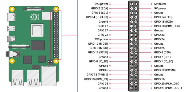 Raspberry Pi의 GPIO 핀 배열은 다음과 같다.