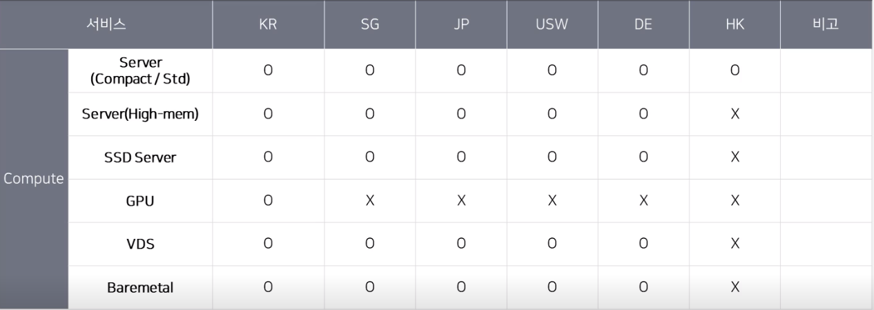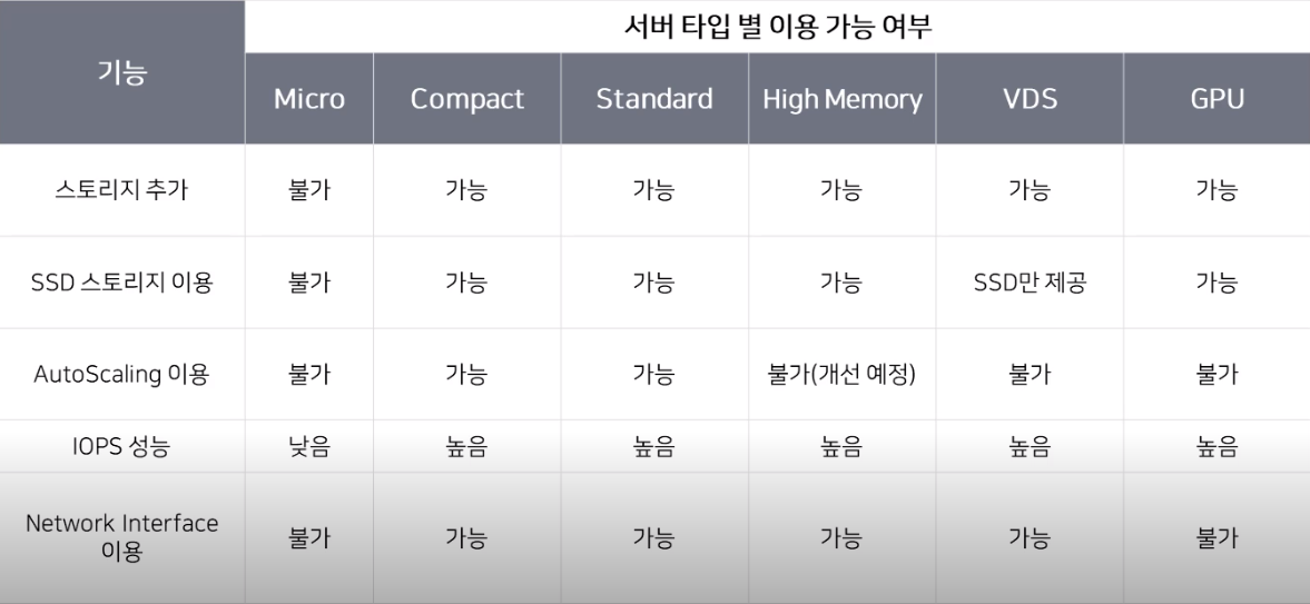 - 일반적인 2vCPU~16vCPU 상품부터 High Memory 서버, VDS(Virtual Dedicated Server, 다른 VM과 간섭이 없음), HPC, GPU 등 다양한 상품 라인업이 준비