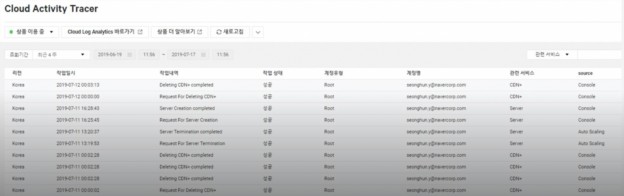 - 서브 계정이 작업한 모든 내역은 Cloud Activity Tracer 상품에서 확인 가능