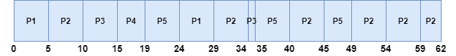 각 프로세스들은 공정하게 5만큼의 시간 동안 작업을 진행하는 것을 볼 수 있네요.