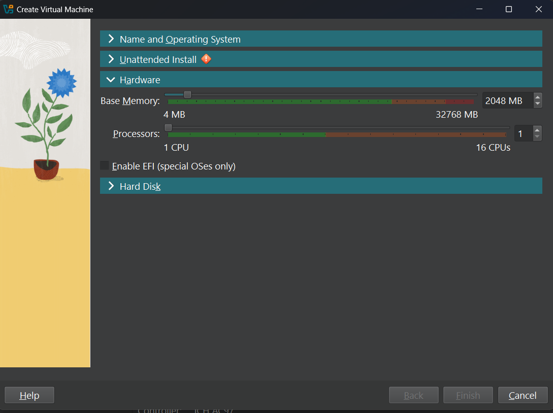 Hardware에서, 본인PC의 사양을 고려하여 적절한 리소스를 할당한다.